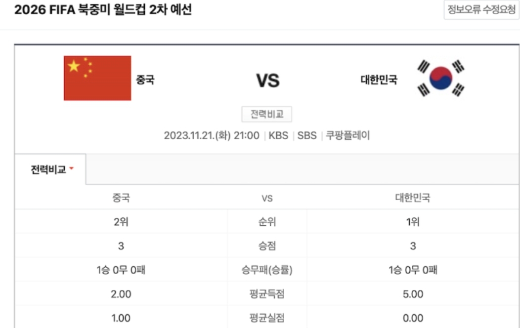 2026 북중미 월드컵 아시아 2차예선 한국대표팀 한국 중국 축구 중계 11월21일 화요일 저녁 9시에 중국에서 경기를 합니다. 중계는 쿠팡플레이를 비롯하여 KBS, SBS에서 합니다. 개인적으론 쿠팡플레
